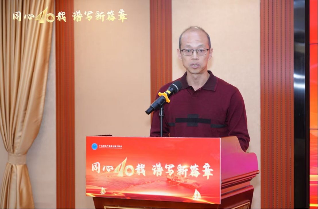 广东省农业技术推广中心渔业部副部长陈智兵致辞表示,四十年来,广东省流通与加工协会见证并深度参与了广东水产产业发展历程,为促进广东渔业增效、渔民增收,保障水产品有效供给和市场稳定,提升“粤字号”水产品品牌影响力与竞争力发挥了重大作用。广东省农业技术推广中心愿与协会进一步加强协作,在技术推广攻关、人才队伍建设、品牌打造与市场推广等方面展开深度合作,共同谱写广东水产高质量发展新篇章。